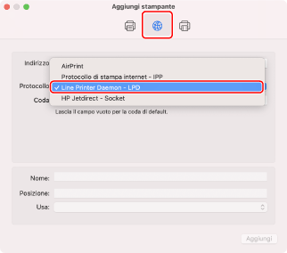 IP], e scegliere [Line Printer Daemon - LPD] da [Protocollo].