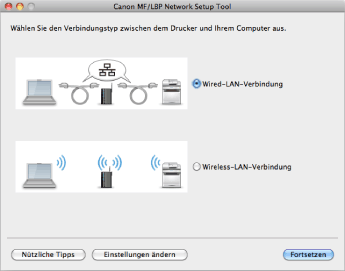 Festlegen der Verbindungseinstellungen mithilfe von "Canon MF/LBP Network Setup Tool"