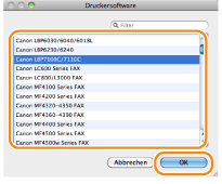 Wählen Sie einen Treiber, dessen Name mit "Canon" beginnt. |