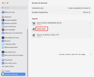 Öffnen Sie die [Systemeinstellungen] in macOS → klicken Sie auf [Drucker & Scanner] in der Seitenleiste.