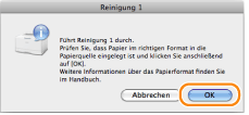 Die Reinigung der Fixierwalze kann nicht abgebrochen werden. Warten Sie bitte, bis sie abgeschlossen ist. (Die Reinigung ist beendet, sobald das Papier vollständig ausgegeben wurde.) |