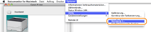 Wählen Sie im Menü [Optionen] des Statusmonitors die Option [Utility] → [Reinigung 2] aus.