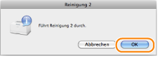 Die Meldung <Reinigung> wird eingeblendet und die Reinigung wird gestartet. Wenn die Meldung gelöscht wird, ist die Reinigung abgeschlossen.