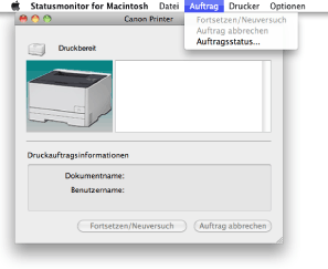 Die folgenden Optionen befinden sich im Menü [Auftrag] des Statusmonitors.