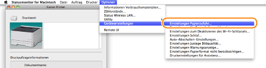 Wählen Sie im Menü [Optionen] die Option [Geräteeinstellungen] → [Einstellungen Papierzufuhr] aus.