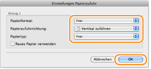Das Dialogfeld [Einstellungen Papierzufuhr] wird angezeigt.