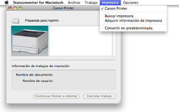 Muestra las impresoras para las que puede observar el progreso de los trabajos de impresión. Si hay más de una impresora, seleccione la impresora que desee observar.