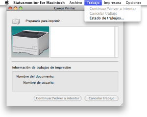 Las siguientes funciones están disponibles en el menú [Trabajo] de Statusmonitor.