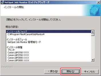 [NetSpot Job Monitor]にチェックマークが付いていることを確認したあと、[インストール]をクリックします。