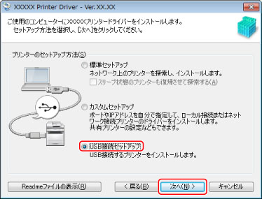 [USB接続セットアップ]を選択してインストールする