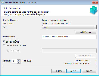 If you added or selected a network printer port, you cannot set [Printer Name] and [Use as Shared Printer].