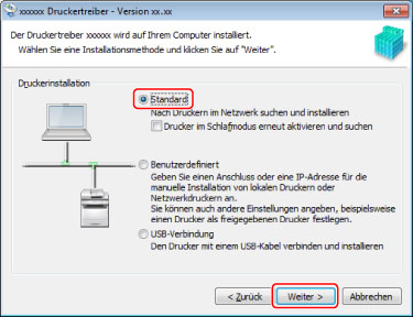 Auswahl von [Standard] für die Installation