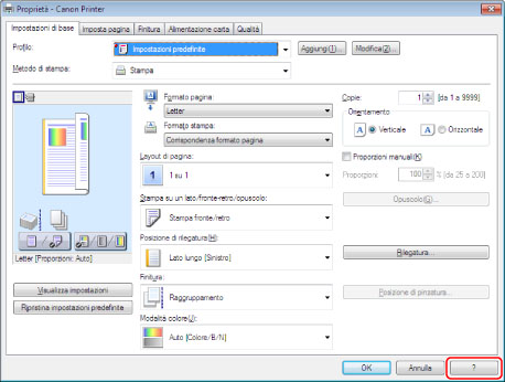 Per informazioni dettagliate sull'uso del driver e di ciascuna funzione, consultare la guida.