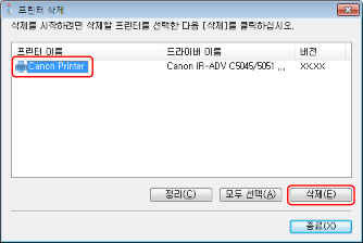 [프린터 삭제] 화면에서 → [종료]를 클릭합니다.