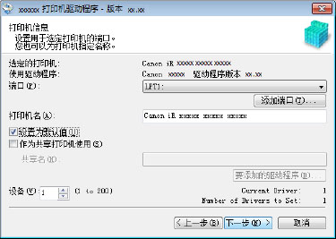 如果添加或选择了网络打印机端口,则无法设置[打印机名]和[作为共享打印机使用]。