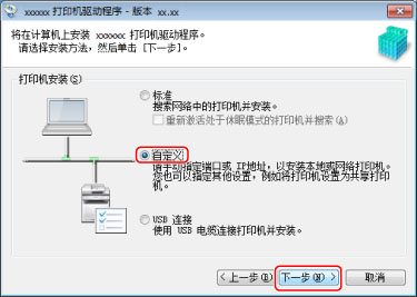 选择[自定义] → 单击[下一步]。