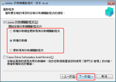 [開始安裝印表機驅動程式]:如果已安裝驅動程式,請視需要選取此項目。