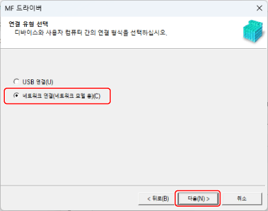 다운로드한 MF 드라이버 설치(네트워크 연결)