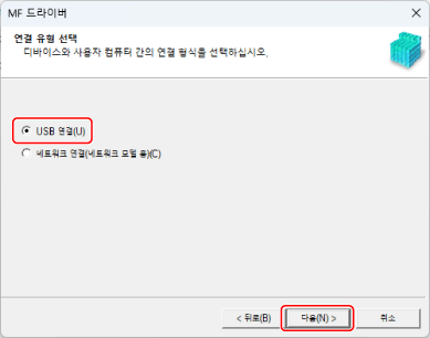 다음 화면이 표시되면 [USB 연결]을 선택 → [다음]을 클릭합니다.