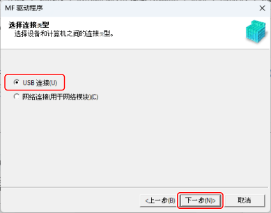 如果显示以下屏幕,选择[USB 连接] → 单击[下一步]。