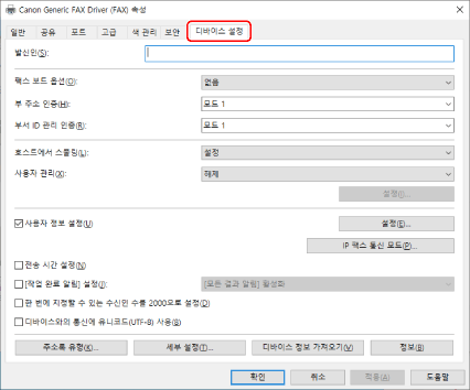 디바이스의 팩스 전송 설정이 변경됐습니다.