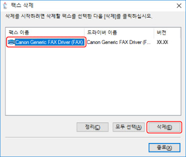 [팩스 삭제] 화면에서 [종료]를 클릭합니다.