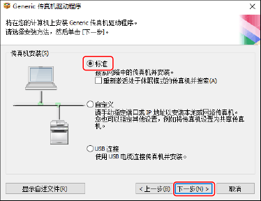 [继续安装传真机驱动程序]:已安装驱动程序时,如有必要,可选择此项。