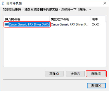 在 [刪除傳真機] 畫面中,按一下 [離開]。