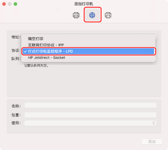 可在 macOS 中注册通过“行式打印机监控程序 - LPD”连接的传真机。