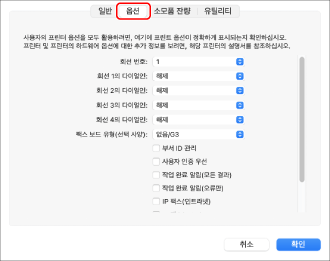 참고디바이스에 실제로 설치된 옵션만 선택하십시오.