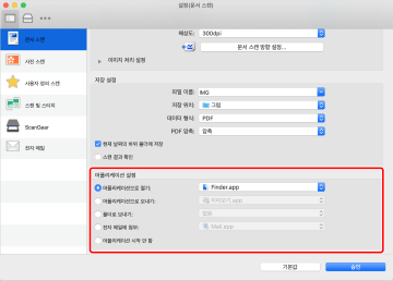 스캔한 이미지를 열고 처리할 때 응용 프로그램에 연결하는 방법을 설정합니다.