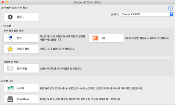 MF Scan Utility로 지정할 수 있는 주요 스캔 기능을 선택할 수 있습니다.