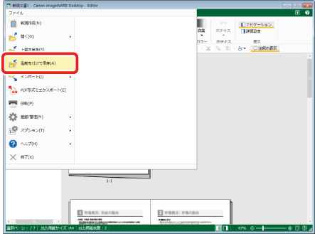 [ファイル]メニューをクリックし、[名前を付けて保存]を選択します。