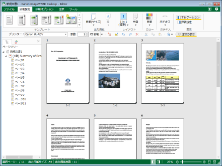 Desktop Editorは、文書に印刷体裁を追加したり、文書を加工/編集したりできます。また、文書を結合したり、ページを並べ替えたり、不要なページを削除したりできます。IWB形式(*.iwb)で保存すると、印刷体裁を文書と一緒に保存できます。
