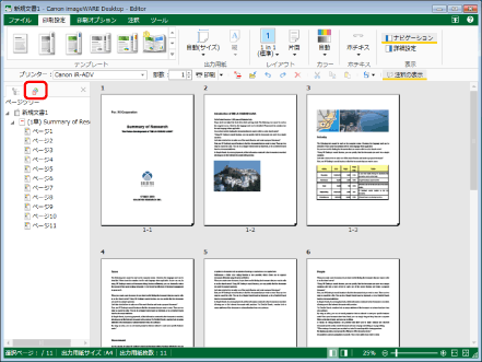 (サムネイル):文書のページサムネイルが表示されます。ページサムネイルをクリックすると、表示や操作の対象ページを選択できます。