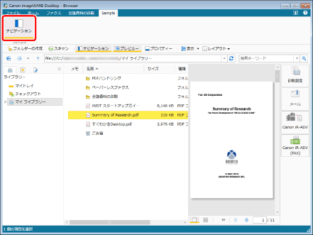 ナビゲーションウィンドウを表示させる場合は、リボンの
