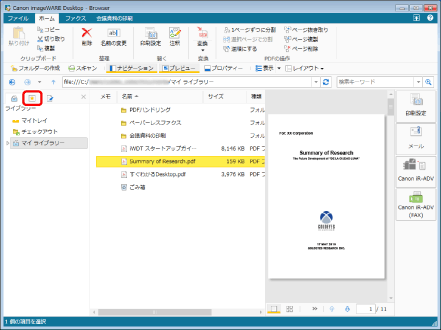 ツールバーのツールボタンでも同じ操作ができます。Desktop Browserのツールバーにツールボタンが表示されていない場合は、次を参照して表示させてください。
