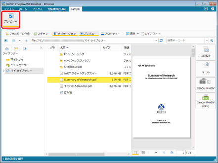 (プレビュー)をクリックします。Desktop Browserのリボンにコマンドが表示されていない場合は、次を参照して表示させてください。
