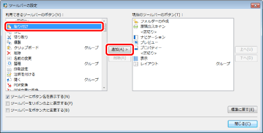 [ツールバーの設定]ダイアログボックスが表示されます。