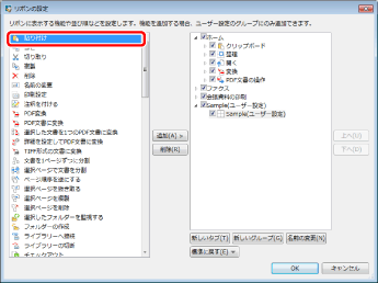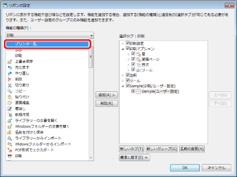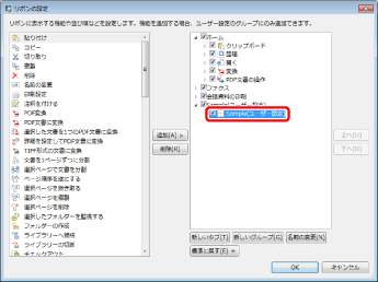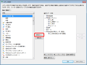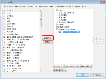 右側の一覧に、選択したコマンド/グループが追加されます。