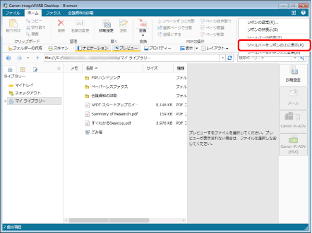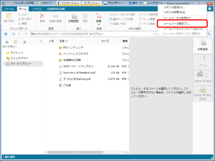 ここでは、ツールバーをリボンの上に表示する方法について説明します。