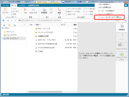ここでは、ツールバーをリボンの下に表示する方法について説明します。