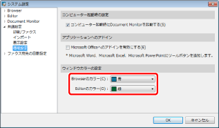 [システム設定] > [共通設定] > [環境設定] > [ウィンドウカラーの設定]