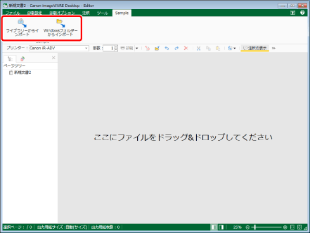 使用しているコンピューターで印刷が可能なすべての文書/フォルダーをドラッグ&ドロップしてIWB文書を新規作成できます。ただし、一部の外部アプリケーションでは、インポートエラーになるものがあります。