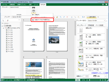 をクリックして、[印刷ダイアログを表示]を選択します。