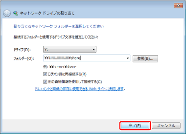 Windows 8/Windows 8.1/Windows 10の場合は、[サインイン時に再接続する]にチェックマークを付けます。