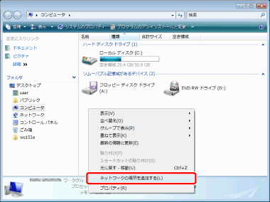 Windows 8/Windows 8.1の場合は、[デスクトップ]画面の[コンピューター](Windows 8.1の場合は[PC])を右クリックして、[ネットワークドライブの割り当て]を選択します。