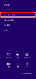 [デスクトップ]画面上でチャームの[設定] > [コントロール パネル]を選択します。