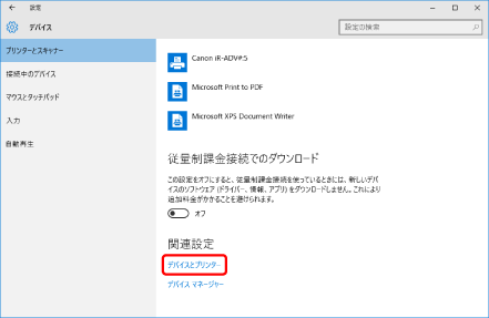 [プリンターとスキャナー]メニューの[デバイスとプリンター]を選択します。