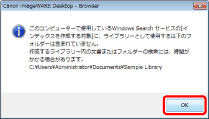 確認画面は、Windows Searchサービスが有効でない状態でローカルコンピューター上のフォルダーを登録した場合に表示されます。